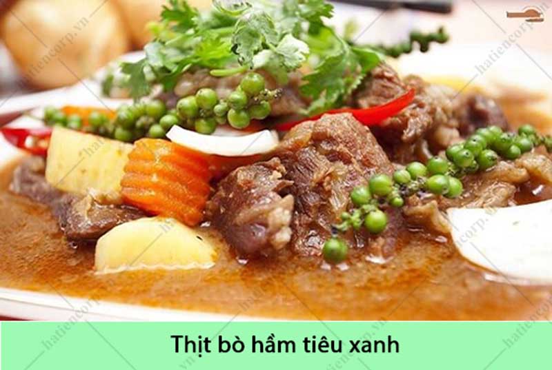 Trời đã vào mưa, khí chiều đang chuẩn bị dần vào se lạnh, một làn khói nghi ngút từ những thức ăn nóng, thơm lừng sẽ làm dịu lại khí lạnh của bầu trời. Món bắp bò hầm tiêu xanh là món Âu ngon dễ làm mà thiết bị bếp nhà hàng này lại dễ tìm, vừa tiết kiệm thời gian, thịt bò nêm nếm vừa đậm đà với nước sốt, khi ăn phảng phất hương thơm của tiêu xanh giúp món ăn ngon không gì sánh bằng.