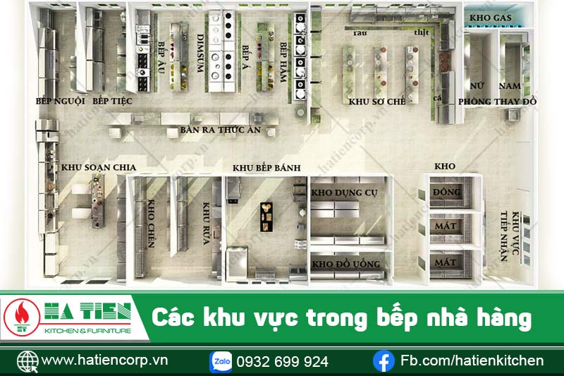 8 khu vực tối thiểu cần có trong bố trí bếp nhà hàng hợp lí nhất.