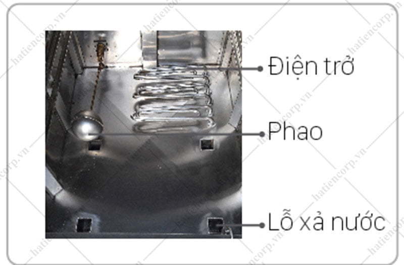 Vào cuối ngày sử dụng, ta nên vệ sinh tủ nấu cơm sạch sẽ bên trong tủ, từ các thành tủ, điện trở, đáy tủ sạch sẽ, van phao … Đảm bảo hệ thống cấp nước luôn hoạt động tốt. (Như hình dưới)