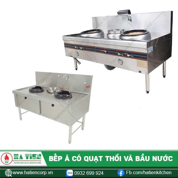 Bên cạnh các họng bếp phục vụ cho việc chiên, xào thì bếp Á có quạt thổi được tích hợp thêm nồi nấu nước. Đầu bếp có thể vừa thực hiện chế biến các món xào, vừa nấu nước lèo, nước hầm cùng một lúc.