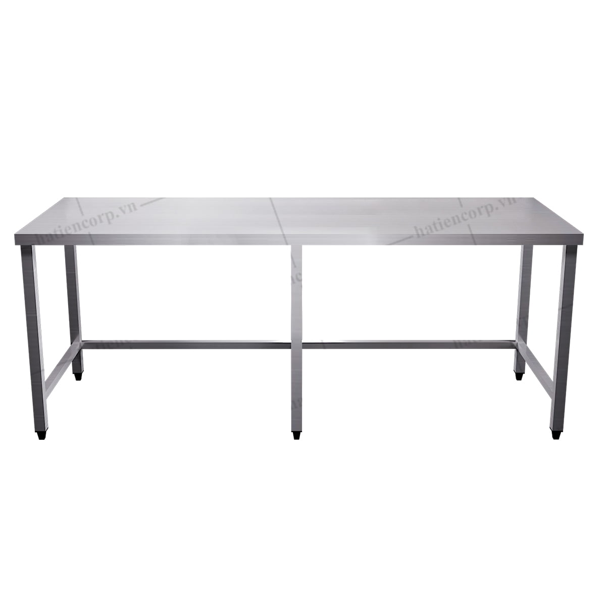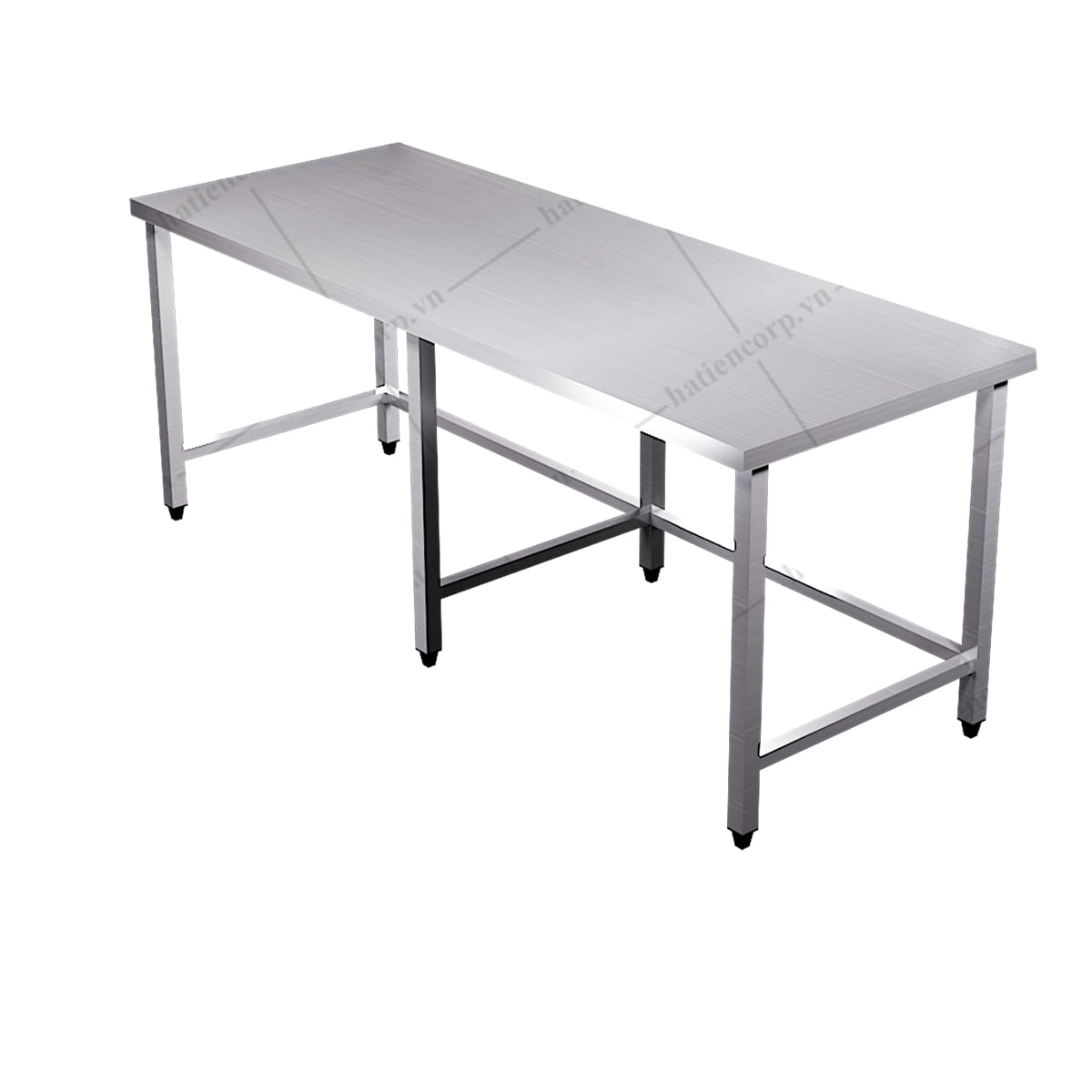 Bàn inox dài 1800x600x850mm Hà Tiên làm tăng thêm không gian chứa đựng dụng cụ nhà bếp. Giúp khu vực chế biến món ăn, trưng bày, soạn chia thức ăn được rộng rãi hơn. Bàn được sản xuất từ chất liệu inox 304 nhập khẩu từ hãng Hyundai, Posco của Hàn Quốc. Do đó, đảm bảo được các yêu cầu chất lượng, độ bền cao, chống rỉ sét tốt. Bàn inox công nghiệp của công ty Hà Tiên được các kỹ sư tính toán thiết kế kỹ lưỡng kết cấu nên luôn đảm bảo chịu lực rất tốt. Đặc biệt bàn được thiết kế đảm bảo an toàn vệ sinh thực phẩm trong điều kiện nhiệt độ cao, độ ẩm nhiều, thường xuyên tiếp xúc với dầu mỡ, muối, các gia vị khác…