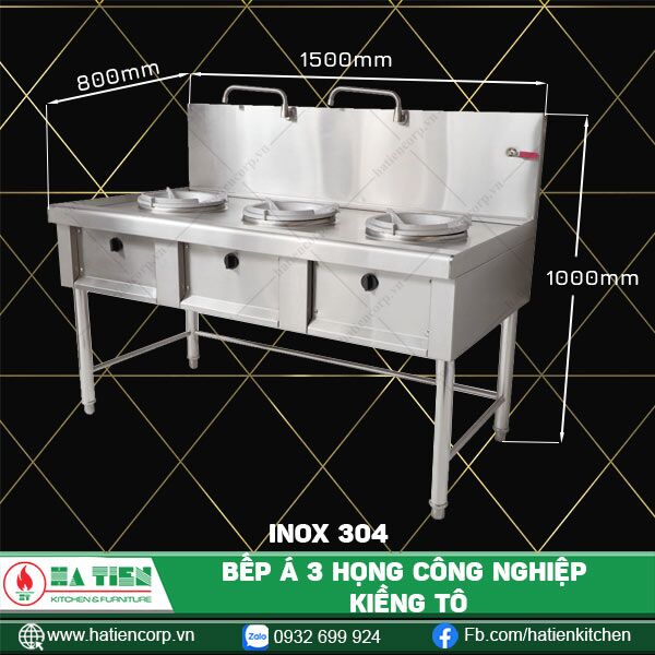 Bếp á 3 họng kiềng tô công nghiệp là thiết bị không thể thiếu của các nhà hàng, khách sạn, căn tin, các khu bếp ăn tập thể chuyên nấu món á, món xào, món hầm.