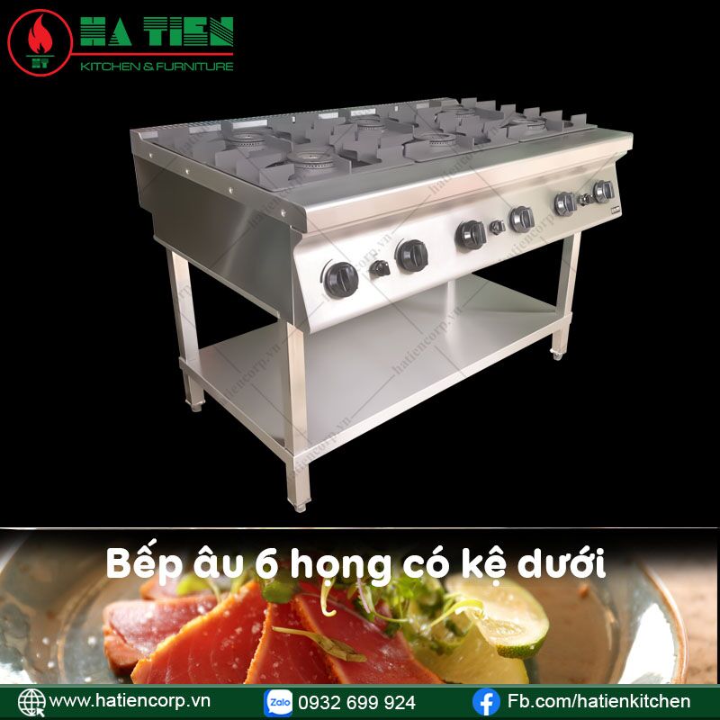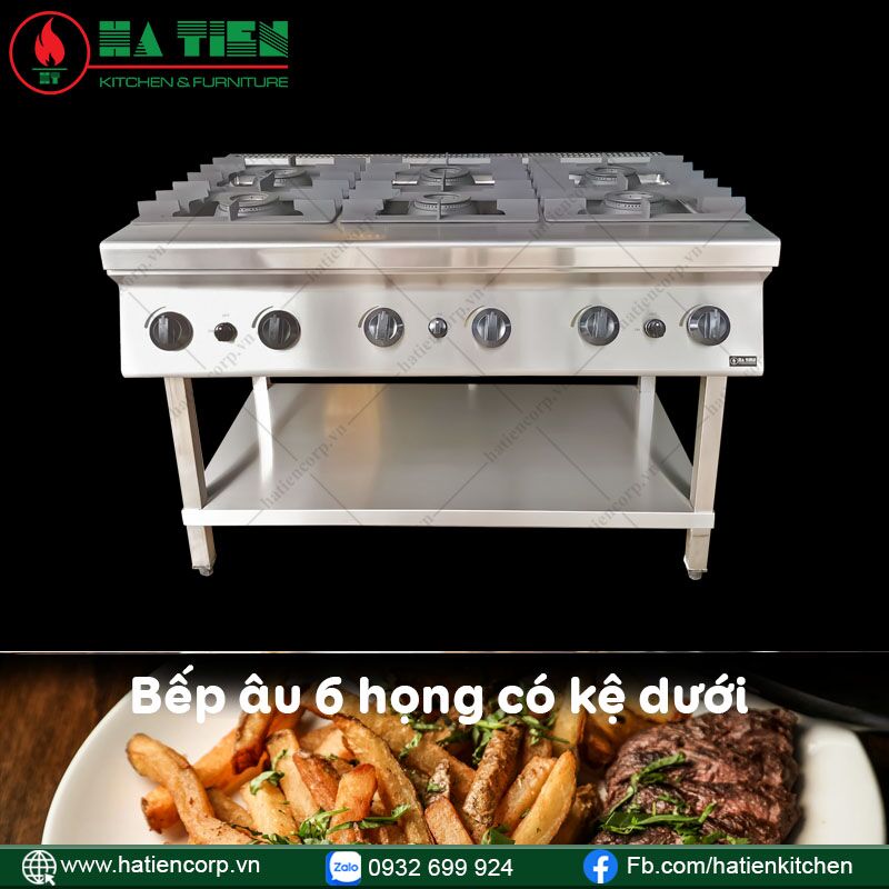 Trên đây là những thông tin liên quan đến bếp âu 6 họng dùng gas có kệ dưới của Hà Tiên. Nếu Quý khách có bất kỳ thắc mắc nào liên quan đến sản phẩm này hoặc các thiết bị bếp công nghiệp khác, xin vui lòng liên hệ tới số Hotline 0932 699 924. Đội ngũ nhân viên Hà Tiên sẽ nhanh chóng phản hồi quý khách một cách tận tâm nhất.