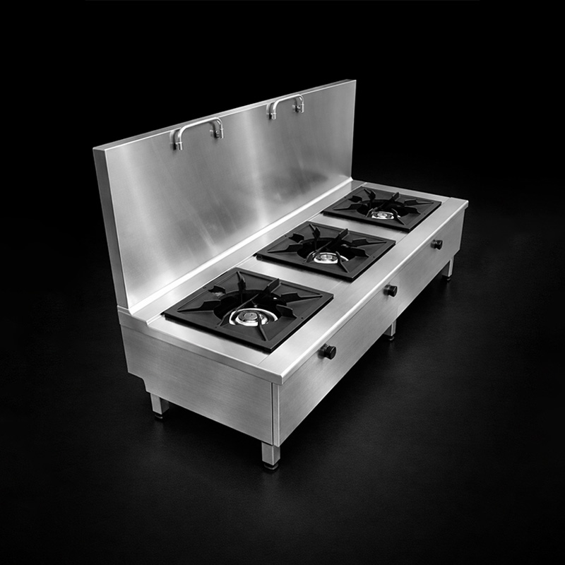 Ba họng đốt hoạt động độc lập, cho phép chế biến nhiều món cùng lúc, tiết kiệm thời gian và tối ưu hiệu suất vận hành bếp. Hệ thống cấp nước trực tiếp ngay trên bếp giúp thao tác nhanh gọn, không cần di chuyển nhiều.