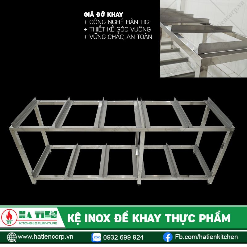 - Kệ inox được sản xuất tại Hatiencorp đáp ứng được các tiêu chuẩn chất lượng cao, đảm bảo độ bền và an toàn cho sức khỏe người sử dụng.