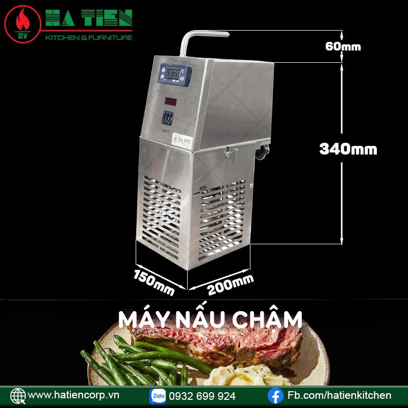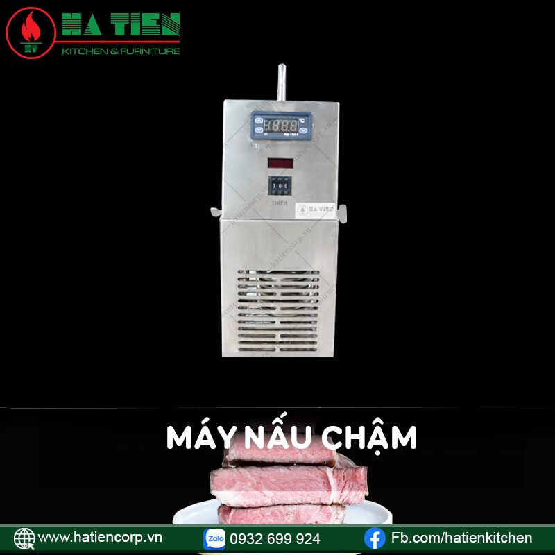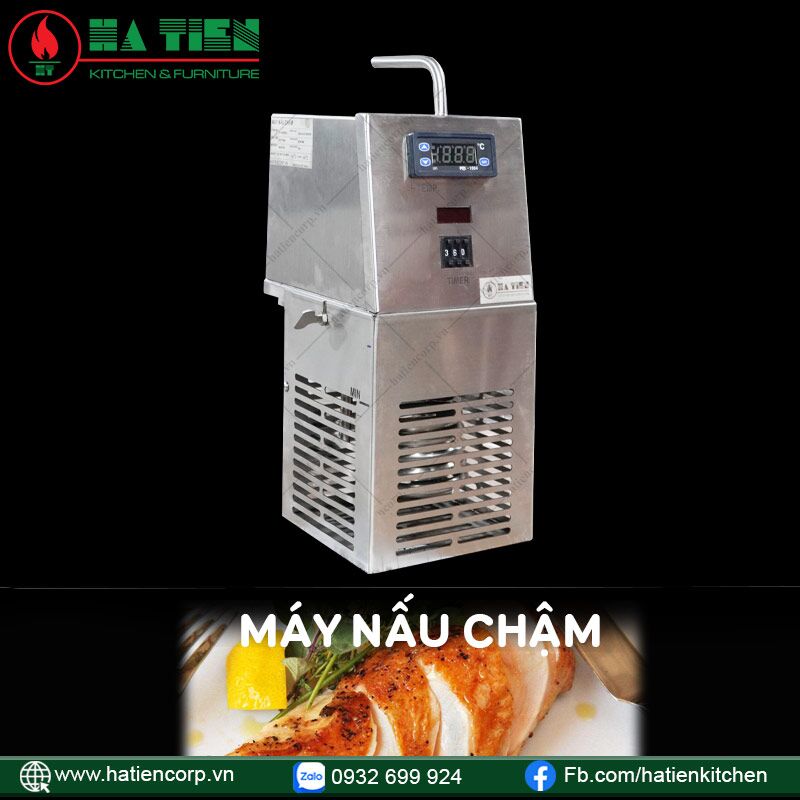 Máy nấu chậm của Hà Tiên là thiết bị bếp cho phép bạn chuẩn bị kỹ các món ăn trong menu trước thời điểm phục vụ. Trong quá trình sử dụng, bạn sẽ không cần phải túc trực giám sát thường xuyên, vì sợ thực phẩm chín quá hoặc bị cháy. Với thiết kế gọn nhẹ, máy có thể lắp đặt trên mọi làm nồi, dù là nồi tròn hay thùng vuông. Máy giúp tuần hoàn nước, duy trì nhiệt độ thấp và tăng lên rất chậm để làm chín thực phẩm từ từ.