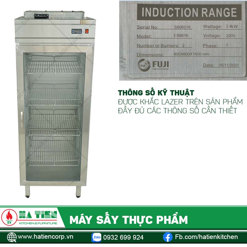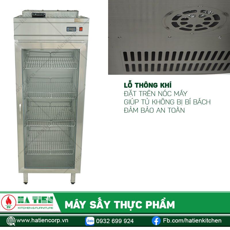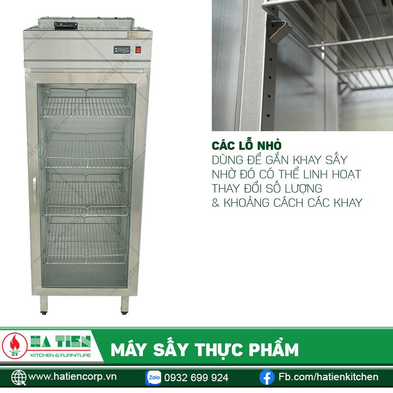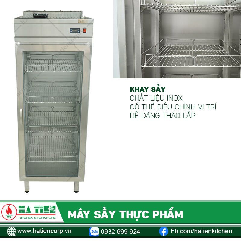 Máy sấy thực phẩm được sản xuất và phân phối chính hãng bởi công ty TNHH SX-TM Hà Tiên. Chúng tôi có thể điều chỉnh kích thước, số khay… của tủ theo yêu cầu từ quý khách. Quy trình sản xuất được kiểm định nghiêm ngặt và chặt chẽ. Đáp ứng các tiêu chuẩn cao về thiết bị bếp công nghiệp. Đảm bảo công năng, chất lượng tốt nhất.