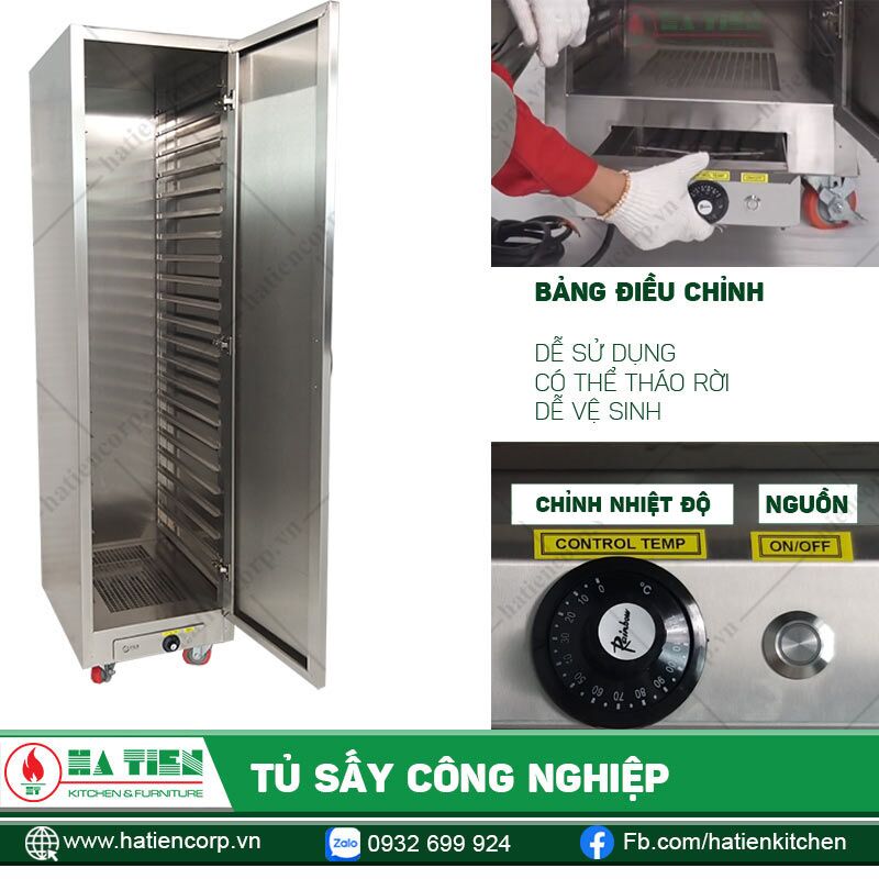 Tủ sấy đa năng được sản xuất và phân phối chính hãng bởi công ty TNHH SX-TM Hà Tiên. Chúng tôi có thể điều chỉnh kích thước, số khay… của tủ theo yêu cầu từ quý khách. Quy trình sản xuất được kiểm định nghiêm ngặt và chặt chẽ. Đáp ứng các tiêu chuẩn cao về thiết bị bếp công nghiệp. Đảm bảo công năng, chất lượng tốt nhất.