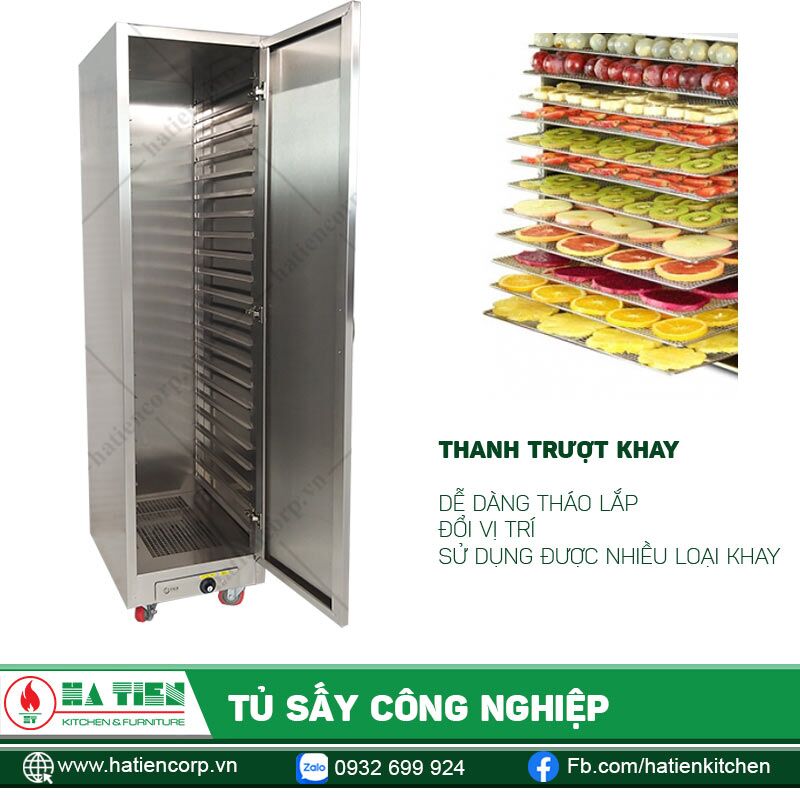 Tủ Sấy Công Nghiệp Hà Tiên là một thiết bị được sử dụng để sấy khô thực phẩm. Như trái cây, rau củ, thịt, cá, hạt, bột và nhiều loại thực phẩm khác. Tủ sấy được thiết kế để loại bỏ độ ẩm trong thực phẩm. Đồng thời giữ nguyên hương vị, dinh dưỡng và giúp thực phẩm bền hơn. Thuận tiện cho việc bảo quản và sử dụng trong thời gian dài. Tủ giúp chúng ta dễ dàng bảo quản và vận chuyển một khối lượng thực phẩm lớn với chi phí thấp nhưng đạt hiệu quả cao.