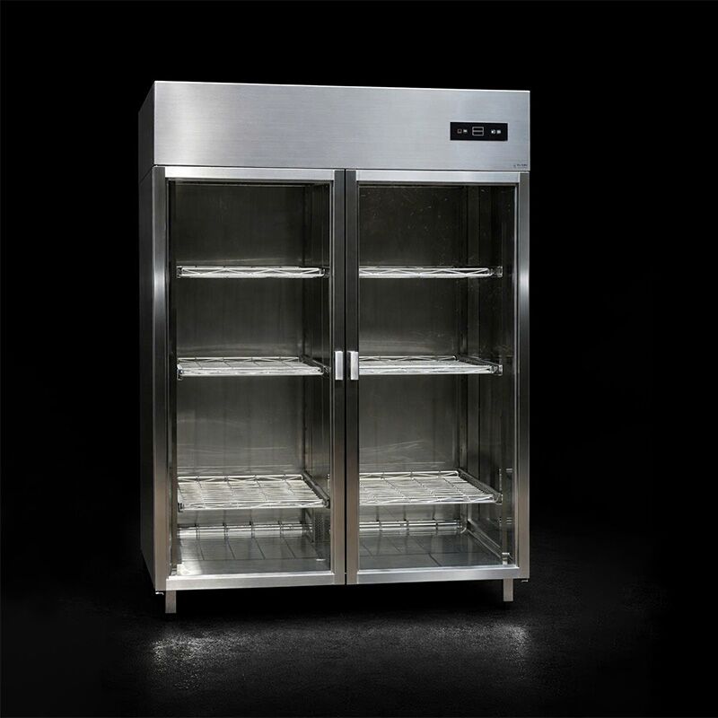 Tổng thể thiết bị có dạng tủ đứng, kết cấu chắc chắn, phù hợp đặt cố định trong xưởng hoặc khu chế biến. Cửa tủ kín, hệ thống gioăng giúp giữ nhiệt tốt, hạn chế thất thoát nhiệt trong quá trình vận hành.