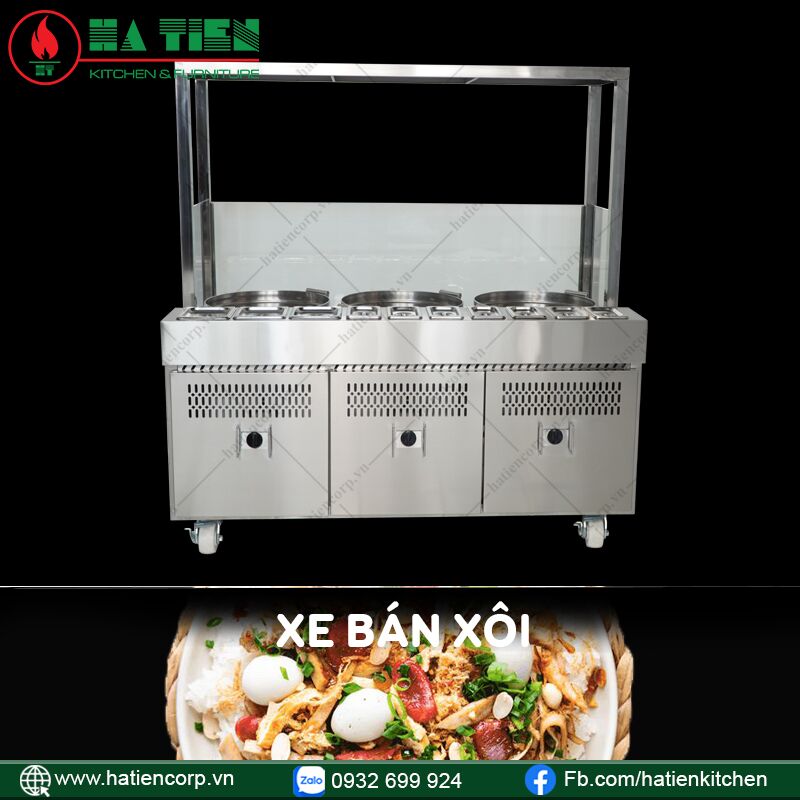 – Bàn chính để 3 nồi nấu xôi/chõ xôi, với 3 chõ xôi đặt và hấp trực tiếp trên xe giúp cho xôi luôn thơm ngon, nóng và mang đến chất lượng tốt nhất cho khách hàng.