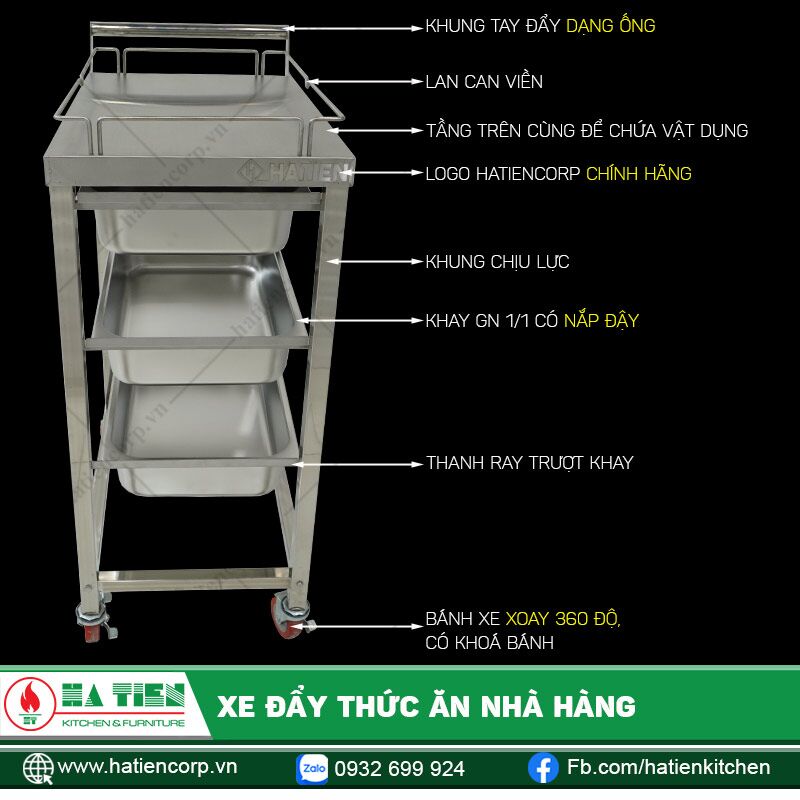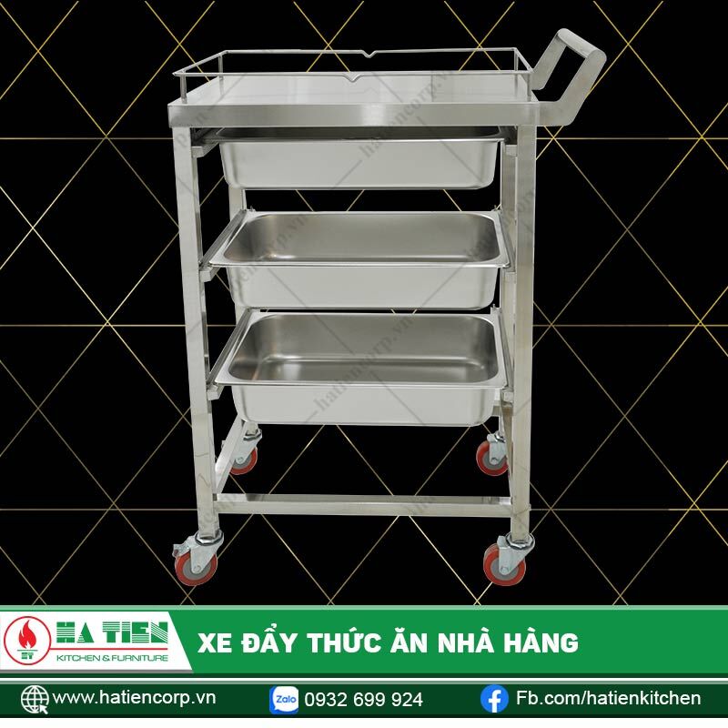Xe đẩy thức ăn nhà hàng Hà Tiên – Xe inox khay GN vận chuyển thức ăn