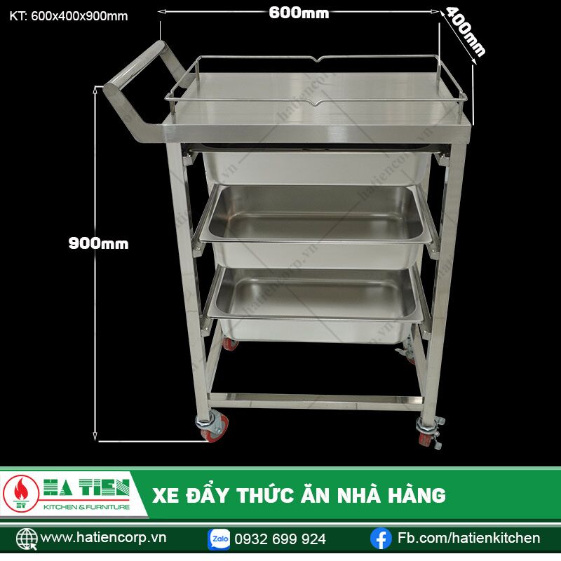 Xe đẩy thức ăn nhà hàng Hà Tiên là loại xe inox có khay GN. Dùng để vận chuyển thức ăn sau khi nấu chín và dùng trong chia soạn thức ăn. Các khay GN có nắp đậy, hợp vệ sinh. Mỗi khay để được 18~20 lít, tương đương với 20kg thức ăn. Đây là thiết bị hữu ích phục vụ tại các nhà hàng, quán ăn, bếp công nghiệp.