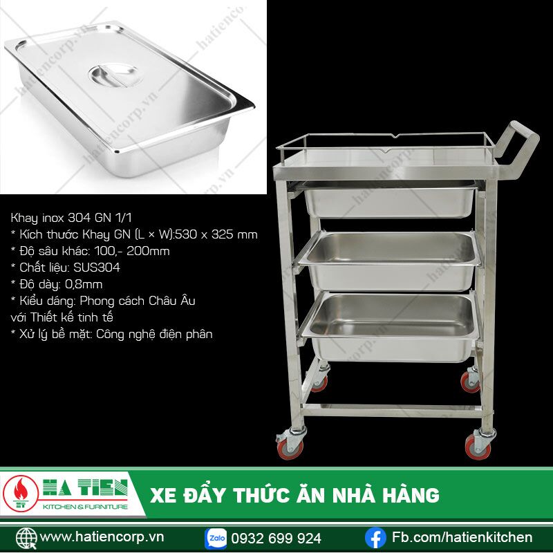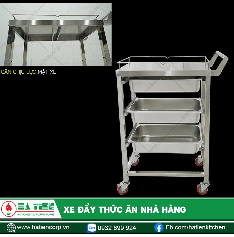 - Xe đẩy thức ăn nhà hàng Hà Tiên – Xe inox khay GN vận chuyển thức ăn
