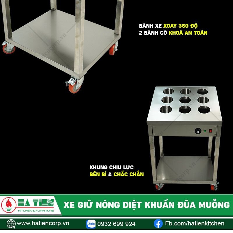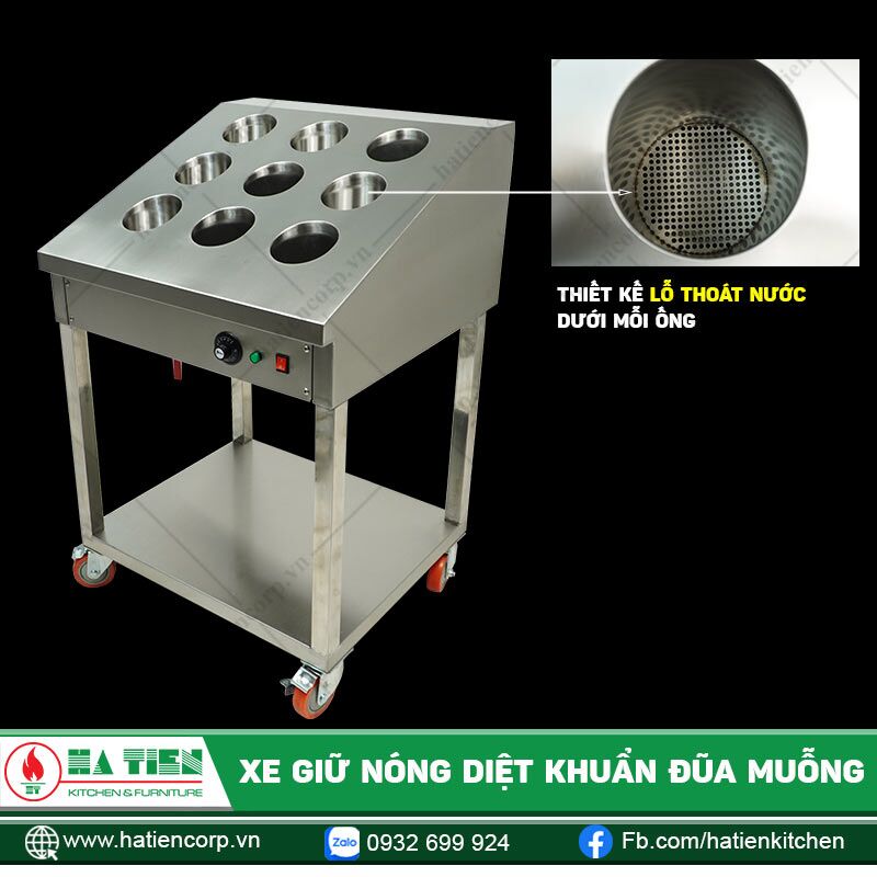 Xe giữ nóng giệt khuẩn đũa muỗng Hà Tiên là sản phẩm hỗ trợ cho các trường học, nhà hàng, khách sạn… Giúp giữ nóng, diệt khuẩn đũa muỗng phục vụ thực khách. Sản phẩm được sản xuất bằng 100% inox cao cấp, không nhiễm từ tính, an toàn thực phẩm.
